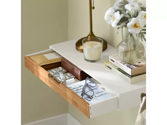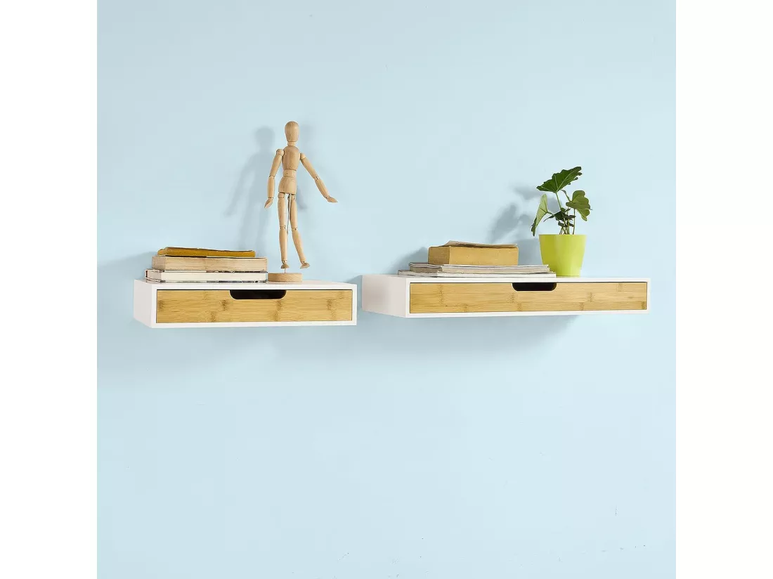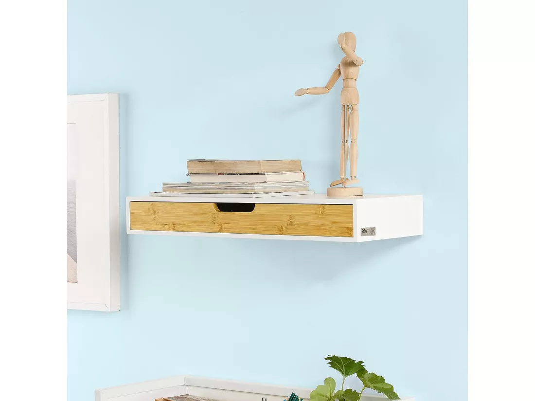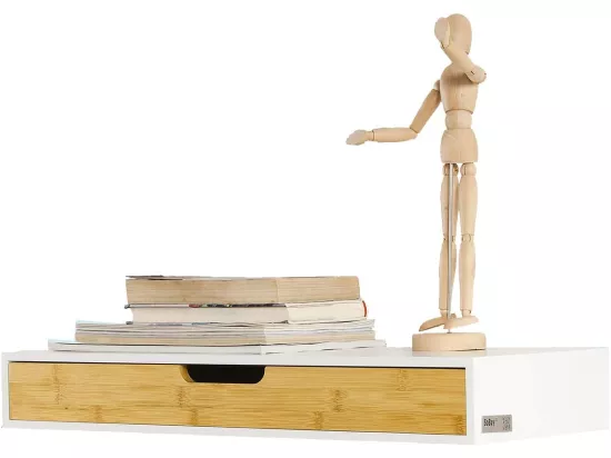 Cette étagère murale à la mode en blanc et bambou naturel, que ce soit dans la salle de bains, bureau, salon moderne, entrée, dans le couloir ou dans la chambre.