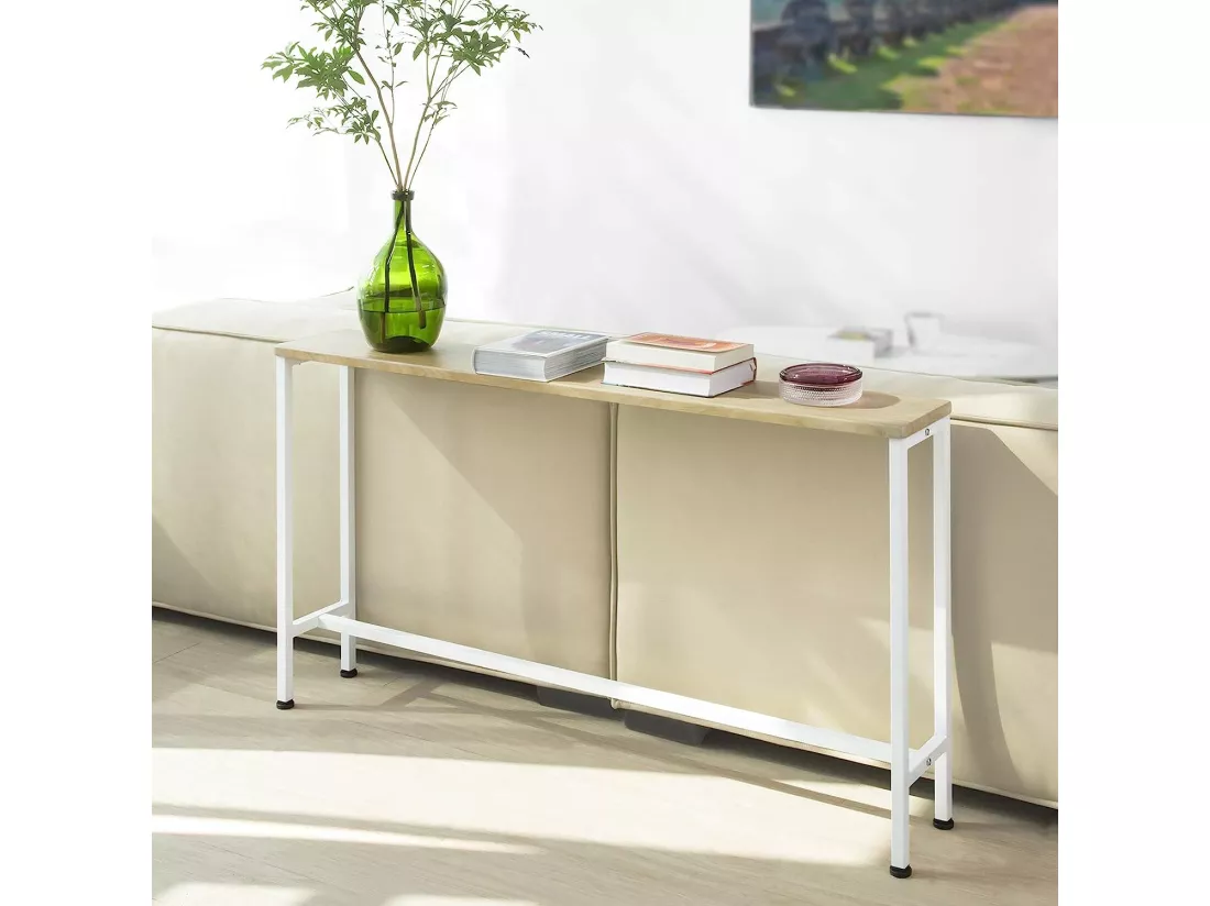 Table Console, Table D’Entrée, Meuble D’Entrée Avec 2 Tiroirs Surface En Verre Transparent, FSB54-N