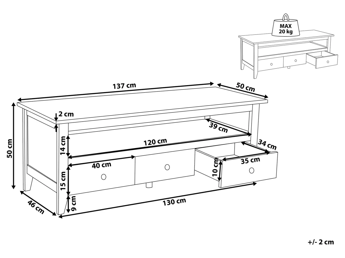 Charge maximum du tiroir: 5 kg