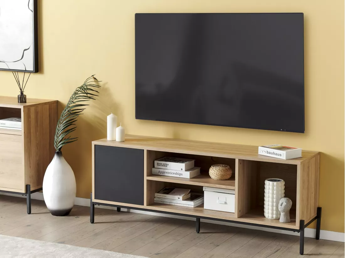 Caractéristiques clés: Avec organisateur de câbles, Système d’ouveture Push to Open, Design moderne, Finition effet bois pour un look naturel, Grand espace de stockage, Patins pour le pieds assurent la protection contre les rayures