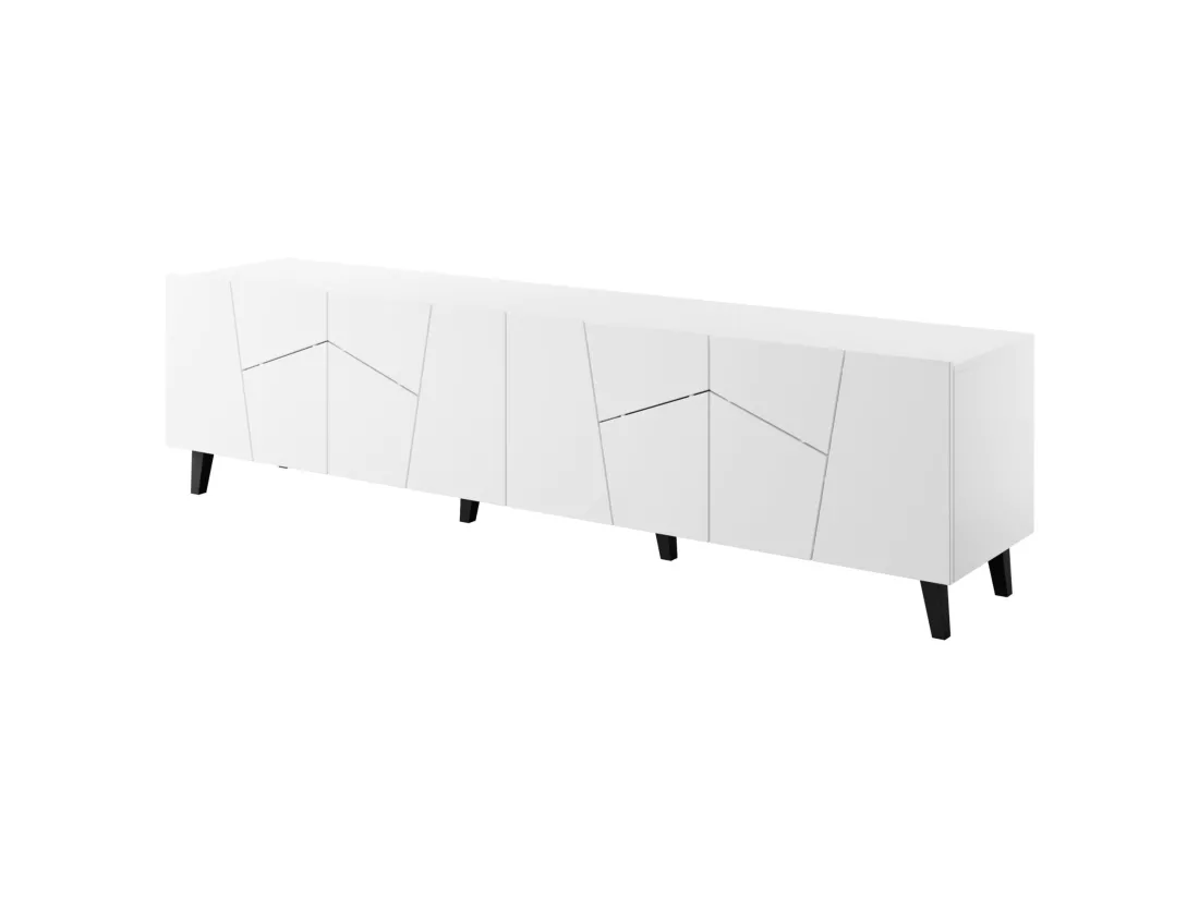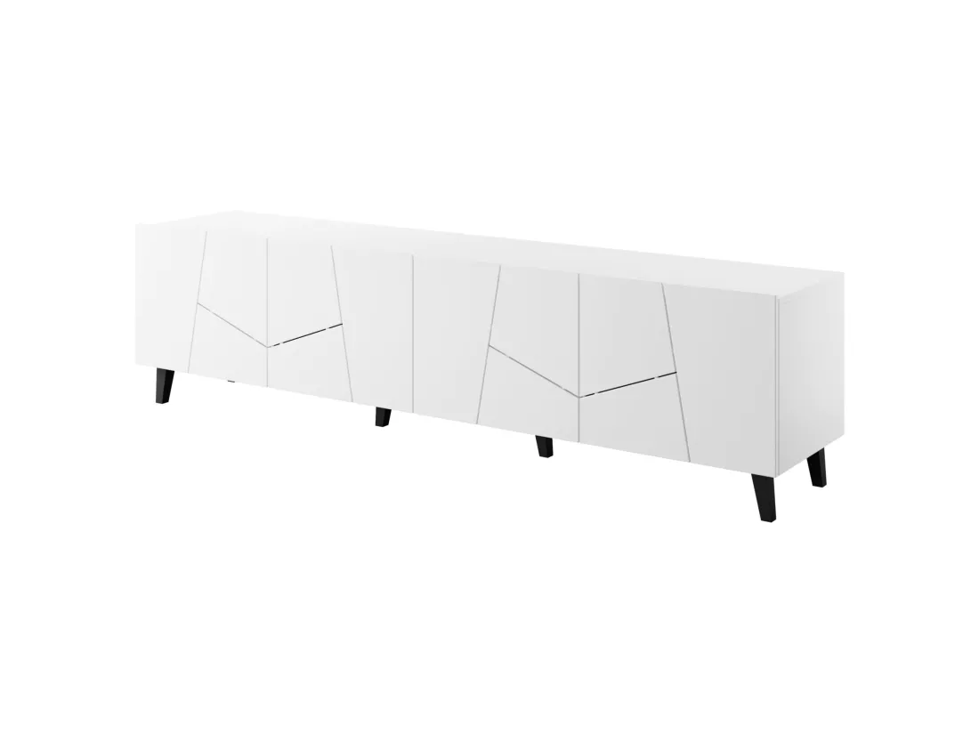 Le meuble TV VITRAIL est un élément élégant de la décoration et un meuble fonctionnel qui prend en charge l’organisation des appareils électroniques dans le salon. Le large plateau permet de placer la télévision, le décodeur ou la console. De plus, quatre armoires avec étagères internes offrent un espace de rangement supplémentaire.
