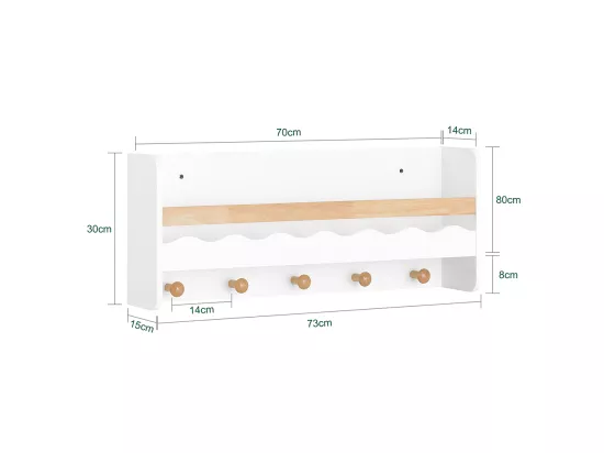 – Capacité de charge : 25 kg (l’étagère 10kg, chaque crochet 3kg).