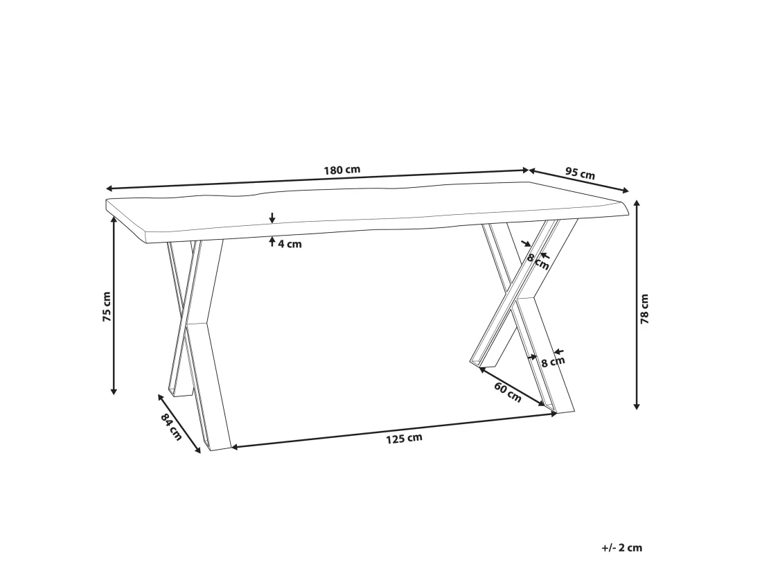 Informations supplémentaires: La table est constituée d’une seule pièce de bois d’acacia. Pour cette raison, il peut y avoir des différences de largeur importantes par rapport aux dimensions indiquées sur la page produit. Sur la surface, il y a des nœuds visibles résultant de la structure naturelle du bois.