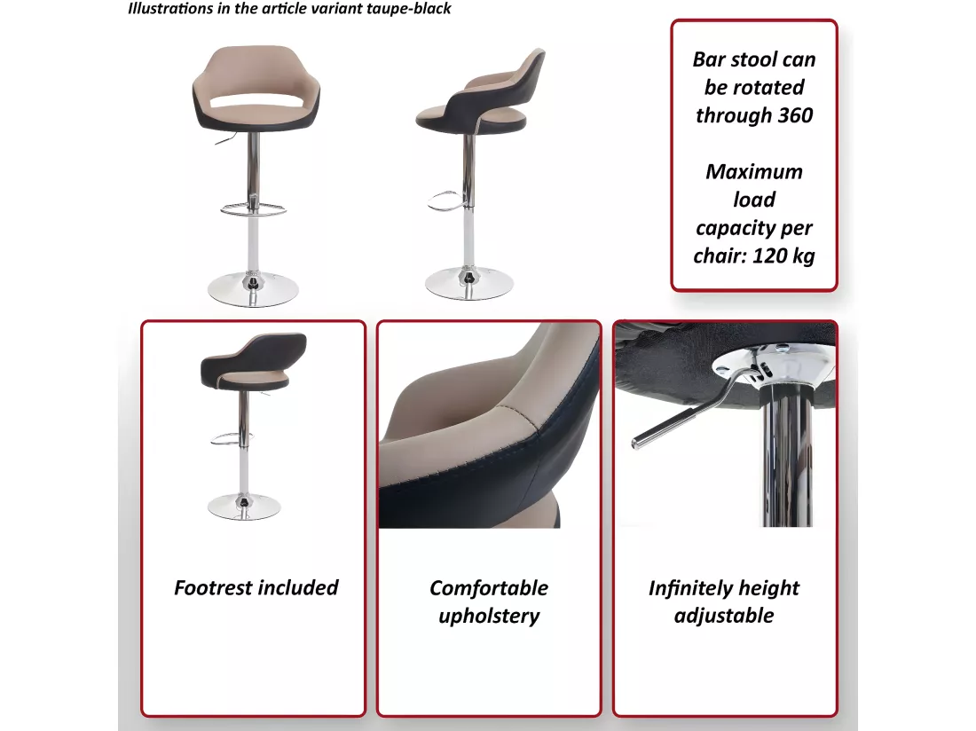 Le tabourest de bar est rotatif de 360° et se fait facilement régler en hauteur en continu. Grâce au repose-pied, vous allez pouvoir vous asseoir confortablement pendant longtemps.